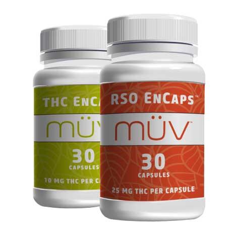 MÜV EnCaps cannabis capsules, too, benefit from the EnCaps technology. With the capsules, however, the capsule itself takes the cannabinoids to the stomach. There, the vegetable-based capsule opens up, releasing the encapsulated cannabinoids to be absorbed in the thinly lined stomach and into the bloodstream.